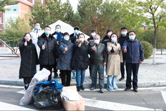 同心抗“疫”,志愿有我。疫情发生以来,呼职学子积极响应学院疫情防控志愿服务倡议,挺身而出、迅速集结,以各种方式活跃在疫情防控最前沿。而这些志愿者也牵动着老师们的心。10月9日下午,宣传统战部党支部、团委党支部联合开展“党建慰问暖人心 守望相助抗疫情”主题党日活动,10名党员为建筑工程系负责校园围墙巡逻工作的志愿者送爱心。