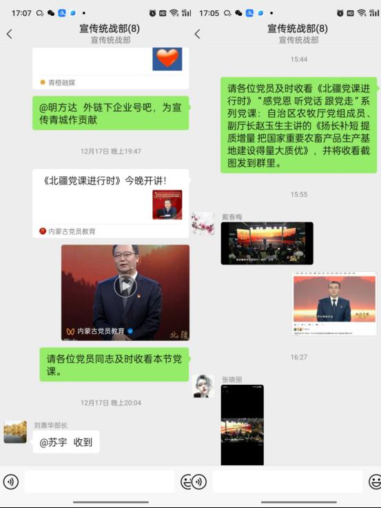 为推动学习贯彻习近平新时代中国特色社会主义思想主题教育走深走实,用党的创新理论统一思想、统一意志、统一行动,12月17日、24日,宣传统战部党支部分别组织党员干部在线收看由内蒙古自治区党委组织部策划制作的《北疆党课进行时》“感党恩、听党话、跟党走”系列党课节目。