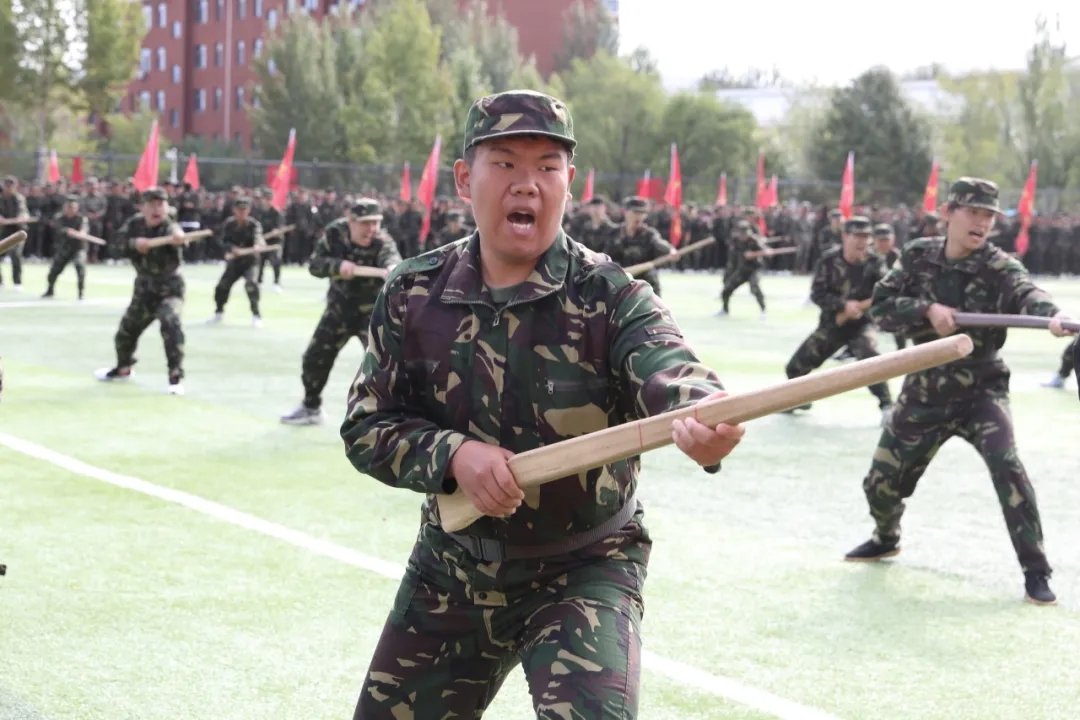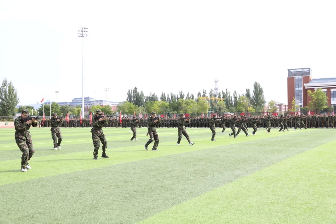 大会在庄严的国歌声中拉开帷幕。参训学生进行了战术对抗演练、男子擒敌拳表演、女子匕首操表演、刺杀操表演等军事科目汇报表演,全面展现了军训以来的训练成果,彰显了呼职大学子昂扬向上的精神风貌。