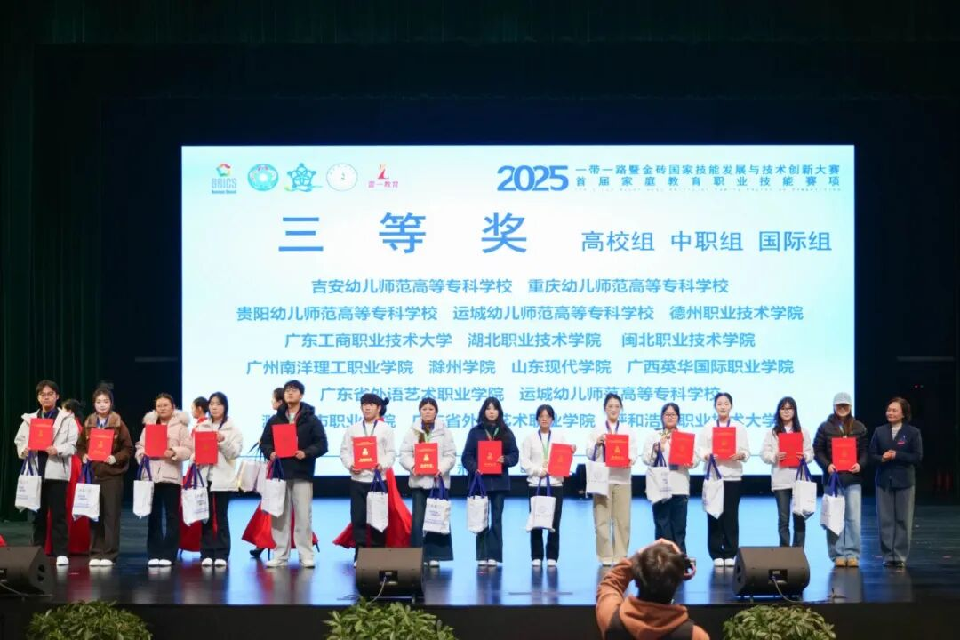 2025年12月22日,2025“一带一路”暨金砖国家技能发展与技术创新大赛——首届家庭教育职业技能赛项决赛在江西南昌职业大学圆满收官。本次赛事中,国际教育学院在国际组与教师组双线参赛中均取得突破性成果,展现了职业教育国际化发展的创新实践。