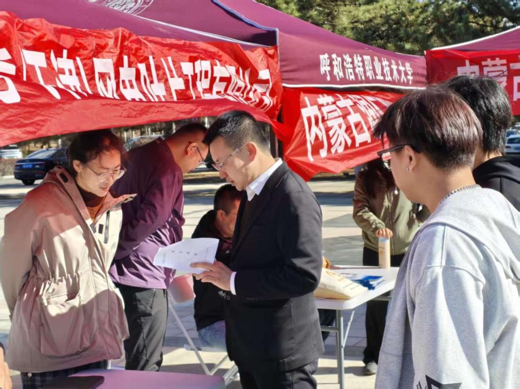为深入贯彻落实国家、自治区关于高校毕业生就业创业工作的决策部署,推动“1571”工作部署落地见效,精准搭建用人单位与毕业生双向选择的高效平台,全力推动2026届毕业生高质量充分就业,3月31日,由内蒙古自治区教育厅指导、呼和浩特职业技术大学主办的2026届未就业毕业生专场招聘会暨第七届实习选岗会,在学校图书馆前广场隆重举办。为毕业生求职、企业揽才搭建了供需对接的优质桥梁。学校主要领导亲临会场指导工作并与用人单位和应聘学生亲切交谈。