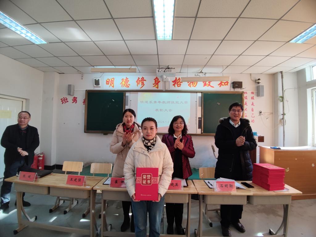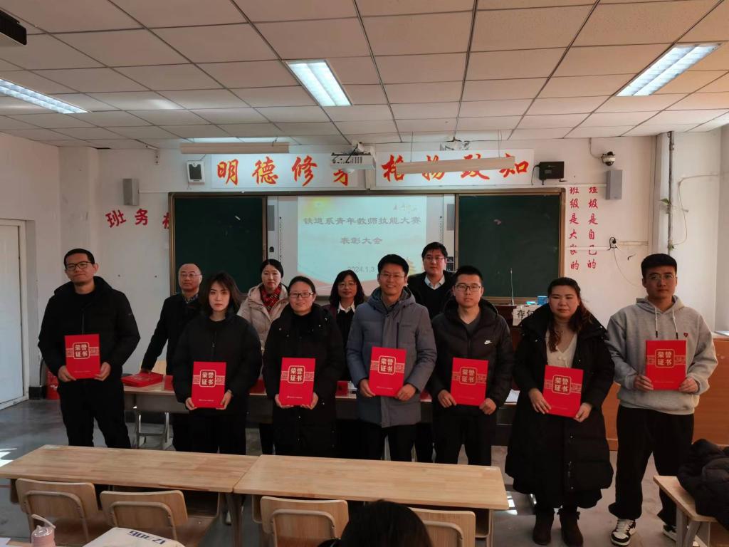 为了推进学习贯彻习近平新时代中国特色社会主义思想主题教育走深走实,表彰在青年教师技能大赛中成绩优异的青年教师,2024年1月3日,铁道系在静学楼208教室内举行了青年教师技能大赛表彰大会。表彰大会由铁道系主任张晓英主持,铁道系全体教职工参加会议。