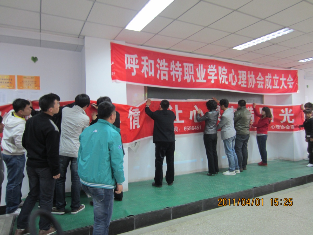 3月31日和4月1日,呼和浩特职业学院心理协会成立大会分别在东西校区举行。院长助理、学生处处长张瑞斌、团委书记崔娜、学生处副处长谢爱萍、魏好毕斯、心理健康教育中心高强、周蕾鸣以及心理协会的全体会员和部分班级的心理委员、宿舍心理信息员参加了此次大会。会上,张处长和崔书记分别发表了热情洋溢的讲话,在对心理协会予以大力支持和指导的同时,也提出了对心理协会的迫切希望和要求。谢处长为心理协会今后的工作做了具体部署,强调了心理协会在同学们当中的重要性。心理协会在心理健康教育中心的指导下,本着“助人、自助、互助”的原则,为广大学生拓宽心理知识、塑造健康心灵、锻炼自身能力提供一个温馨的心灵家园。最后,老师和同学们在印有“放飞快乐心情,让心灵充满阳光”的横幅上签名,至此心理协会成立大会圆满结束。