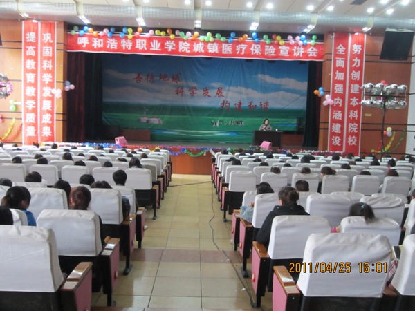 为使学生们能够进一步了解城镇医疗保险有关事宜,4月25日下午三点,学生处组织学生在西校区百年讲坛召开了呼和浩特职业学院城镇医疗保险理赔宣讲大会,学生处副处长赵欣以及王兴明科长、李志强科长、李亚嘉科长和芦广林老师出席了大会。会议由呼和浩特市劳动社会保障局居民医保科科长孟键英和新城区医保科科长李爱琴分别就当前我国大学生保险相关政策和保险理赔流程作了详细讲解。