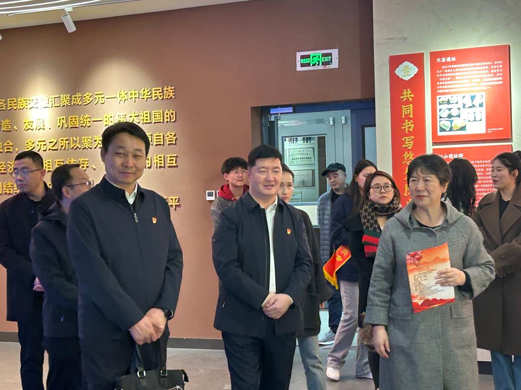 专题讲座结束后,在学院党委副书记白海林,党委委员、宣传统战部部长刘惠华的陪同下,呼和浩特市档案史志馆党总支副书记、副馆长郝利忠一行参观了学院铸牢中华民族共同体意识教育教学实践基地,了解了各民族交往交融交流的历史脉络,感受自治区各族人民共同书写悠久历史、共同创造灿烂文化、共同构建精神家园的丰硕成果和铸牢中华民族共同体意识的生动实践。