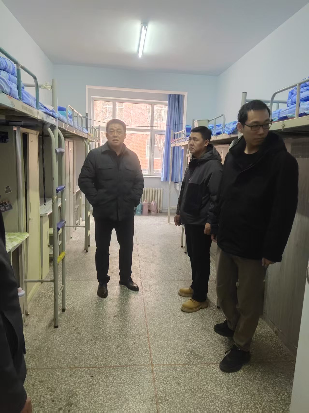 会后,检查工作分两路同步推进。各学院组织辅导员、学生干部对所属宿舍开展全面自查,重点排查违规用电、内务卫生、物品摆放、消防隐患等,建立问题台账,现场督促整改。另一组由魏好毕斯部长带领宿舍管理科、物业公司对各公寓楼进行重点抽查安全设施、用电规范、环境卫生情况,对发现的隐患现场交办、限期闭环,同时向学生普及安全知识,引导养成文明住宿习惯。