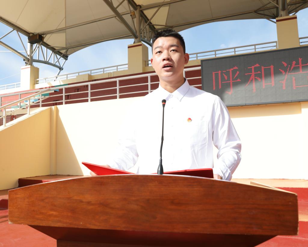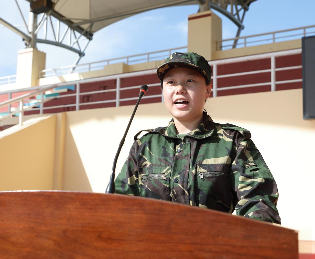 武警内蒙古总队机动支队教官代表孙凯上尉郑重表态:一是科学组训,严格施教。教官们将严格按照军训要求,合理安排训练内容和强度,确保训练的科学性和安全性;二是以身作则,模范带头。全体教官将时刻注意自身形象,以良好的军人作风、过硬的军事素质、昂扬的精神状态投入到带训工作中;三是密切配合,确保安全。教官们将积极与校方、老师们保持沟通,紧密配合,齐心协力做好军训期间的各项管理和训练工作。