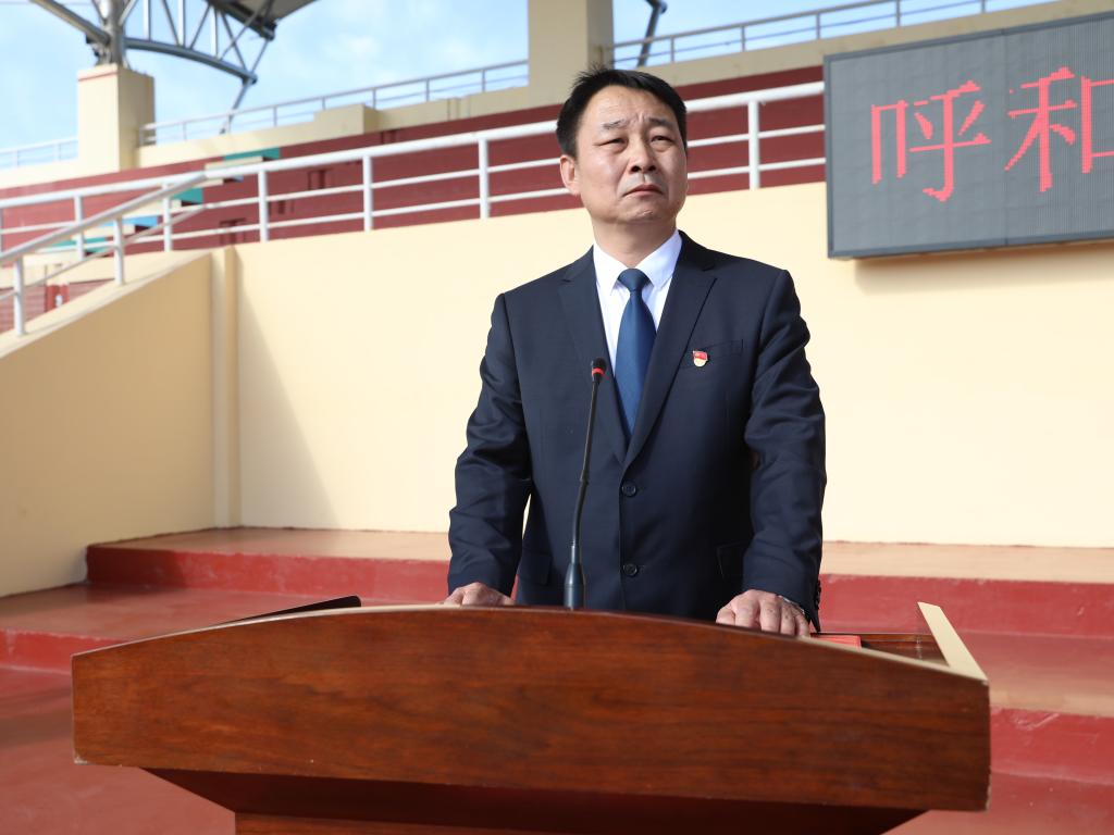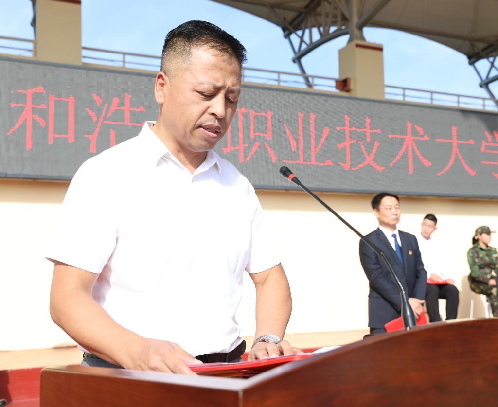 金秋启新序,逐梦向未来。9月8日上午,呼和浩特职业技术大学2025级学生开学典礼暨军训动员大会在学校体育场隆重举行。学校党委委员、院领导,武警内蒙古总队机动支队指战员及教官,各行政处室负责人,各系(部)党总支(支部)书记、主任、全体学团工作人员参加了此次大会。大会由党委副书记白海林主持。
