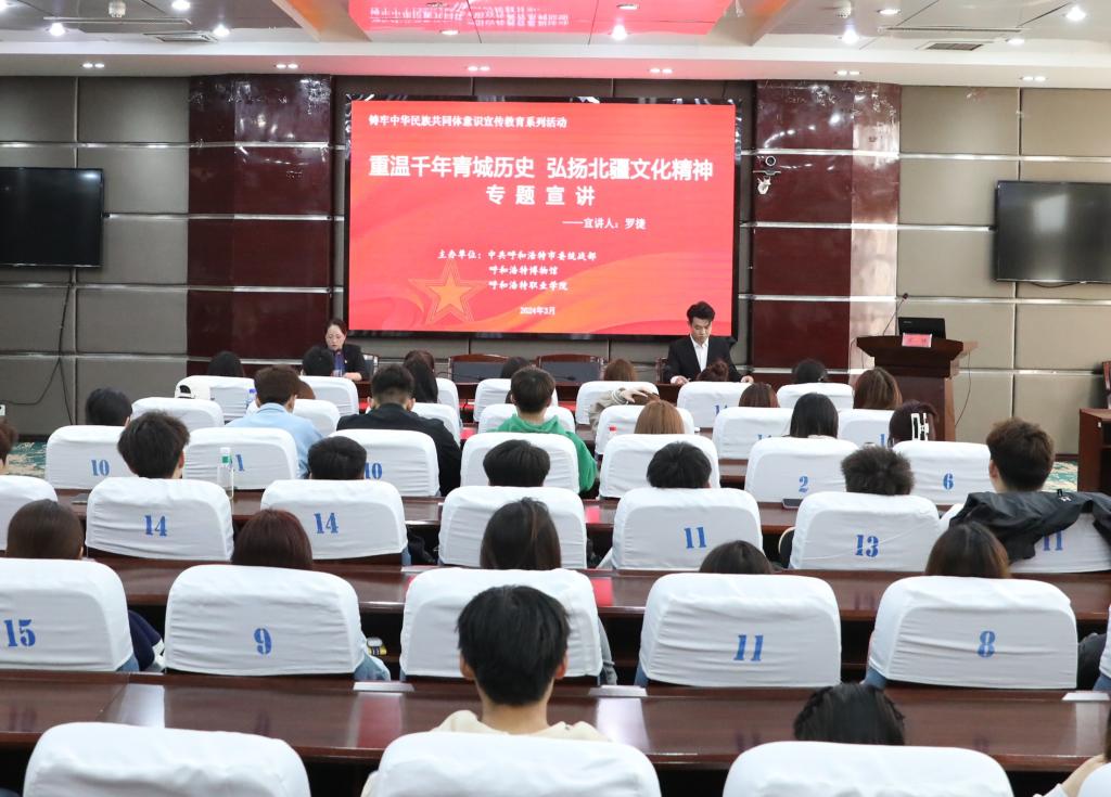3月26日,由市委统战部主办的铸牢中华民族共同体意识宣讲活动在学院举行。活动皆在为深入学习贯彻党的二十大和二十届二中全会精神,深入贯彻落实习近平总书记关于加强和改进民族工作的重要思想,进一步增强对“铸牢中华民族共同体意识是新时代党的民族工作的主线,也是民族地区各项工作的主线”的认识和理解,深入推进铸牢中华民族共同体意识与历史文化宣传教育相融合,充分挖掘千年青城厚重的历史文化和丰富的人文资源,弘扬北疆文化精神。