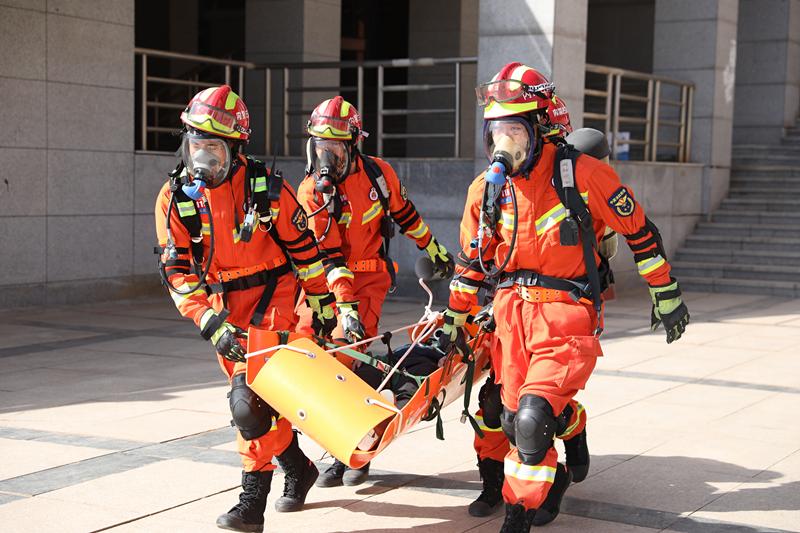 随后,1900余名师生参加实景演练,模拟图书馆报告厅发生火灾情景进行人员疏散、险境搜救,同时开展医疗救护、高空灭火、高空救援等项目演练。