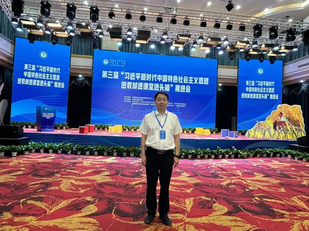 为深入学习贯彻党的二十届三中全会精神,推进习近平新时代中国特色社会主义思想进教材进课堂进头脑,8月1日,由自治区党委宣传部、教育工委、教育厅举办的第三届“习近平新时代中国特色社会主义思想进教材进课堂进头脑”研讨会在内蒙古民族大学召开。全区各高校党委副书记、马克思主义学院院长,各盟市教育行政部门分管负责同志,思政课部门负责人参加了会议。全区大中小学思政课教师在线观看了课程教学展示。我院党委副书记白海林、马研部主任姜淑兰参加了会议。自治区党委教育工委副书记、教育厅党组成员、副厅长李盈出席开幕式并致辞。