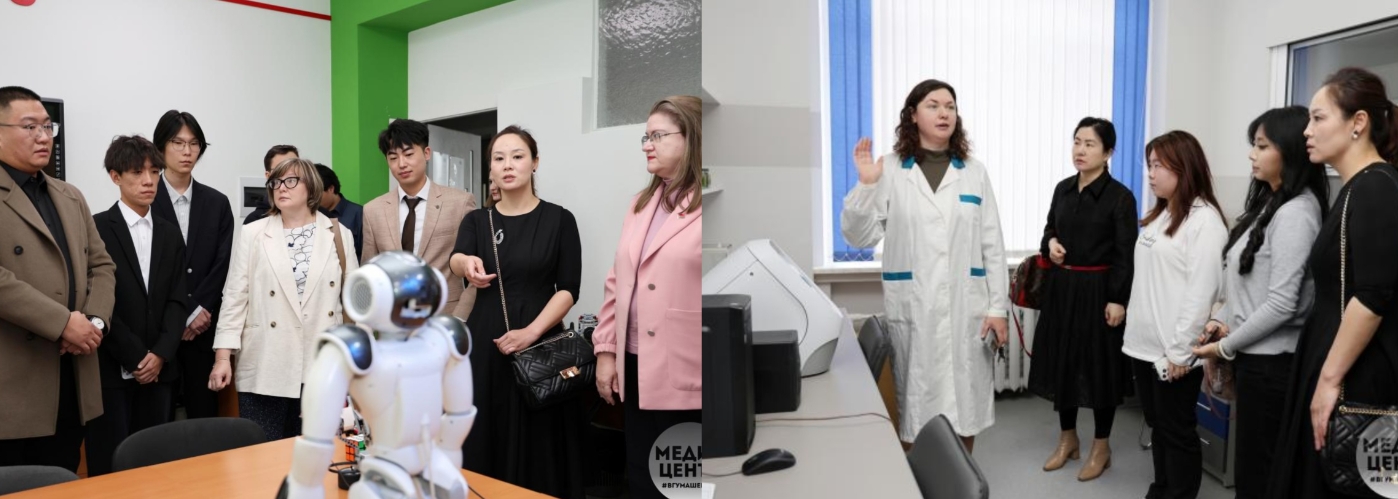 在座谈交流结束后,维捷布斯克国立大学相关学院负责人带领我校实践团开展校内教学与实训场所参观。美术与图形艺术学院院长索科洛娃介绍了美术教育专业的教学环境、创作工作室及文物修复实验室,重点展示了学院在艺术实践、材料技法与文化遗产修复领域的教学特色。数学与信息技术学院院长 扎列斯卡娅带领实践团参观学校的计算机与信息技术实验室,介绍数字化教学资源、信息技术课程体系及相关科研成果。化学生物与地理科学学院院长托尔卡切娃向我校师生展示跨学科综合实验室与生物科学实践教学条件,解读学院在实验技能培养、综合课程设计等方面的建设做法。在学前教育教学区域,实践团先后走进木偶剧实训室、儿童乐器教学室和手工活动室,白方教师系统介绍了该专业的核心课程体系、教学方法和实践组织方式。我校学生与白方学生共同参与木偶情景剧模拟、节奏启蒙练习及创意手工制作等活动,体验到白方重视儿童创造力与综合表现能力的教学理念。在音乐教育区域,实践团参观了合唱授课实训室、舞蹈排练厅及琴房等教学设施,我校学生现场参与声部分组练习、基础舞步训练及节奏模仿,与白方学生共同完成多项音乐实践任务,切身感受白方在音乐教育中对舞台表现力、团队协作和艺术综合能力的重视。其间,实践团与大学俄语教研室负责人及教师开展了语言学习专项交流,就我校学生在白俄罗斯学习俄语的整体情况、不同专业对俄语能力的要求、专业俄语课程设置等内容进行了深入座谈。双方围绕强化语言基础训练、优化专业俄语课程体系、加强学习过程跟踪、完善教学衔接机制等议题交换意见,就未来在俄语课程共建、教师互访授课以及线上线下混合式教学合作等方面达成初步共识,为合作办学项目中文化能力培养与语言学习质量保障提供了重要支撑。