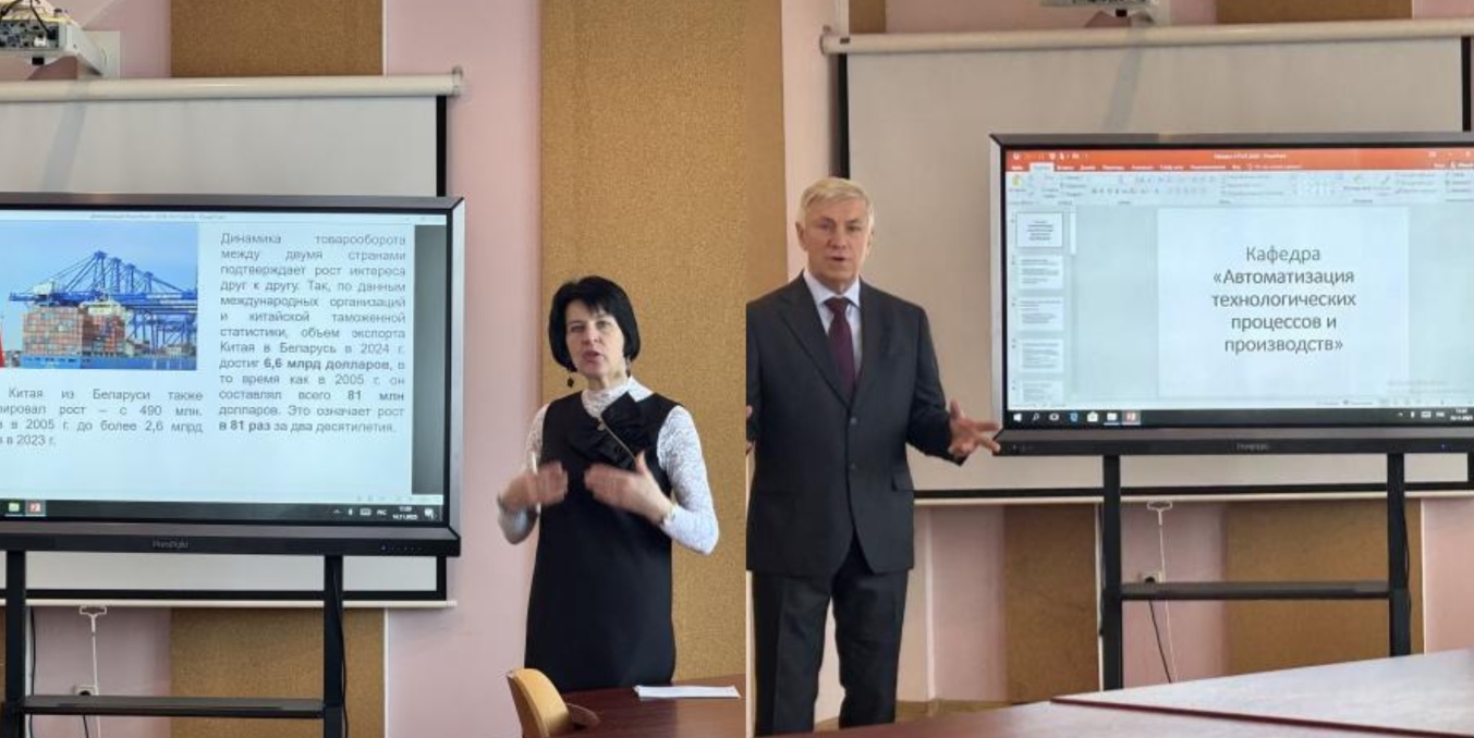 在学术交流环节,系列专题讲座为师生带来了多元知识盛宴。经济系管理教研室主任加尔丘克·因娜·马克西莫芙娜作《白俄罗斯共和国国民经济》主题讲座,机械工程系技术过程和生产自动化教研室主任普罗科片亚·奥列格·尼古拉耶维奇教授作《白俄罗斯共和国的机械工程》专题讲座。我校企业兼职导师以《电气自动化领域专业课程的现代教学方法:呼和浩特职业技术大学的经验》为题开展分享,双方就资源共建共享、教学应用优化等展开热烈探讨,为提升合作办学教学质量提供了新思路。