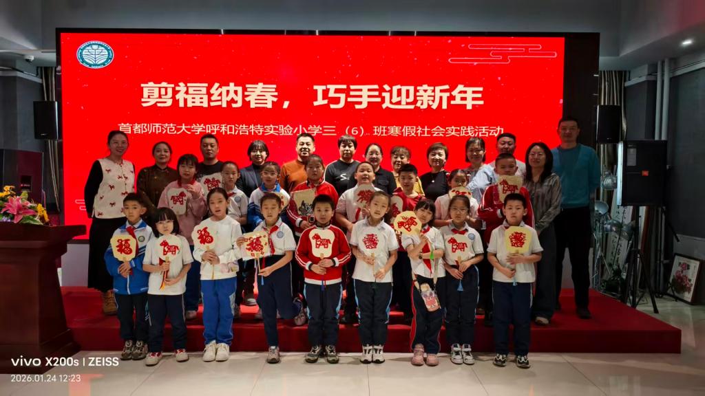 1月24日,呼和浩特职业技术大学美术设计学院剪纸工坊迎来首都师范大学呼和浩特实验小学三(6)班18名师生及家长,以“剪福纳春,巧手迎新年”为主题的非遗研学活动在此开展,彰显工坊服务社会、传承非遗的公益功用。
