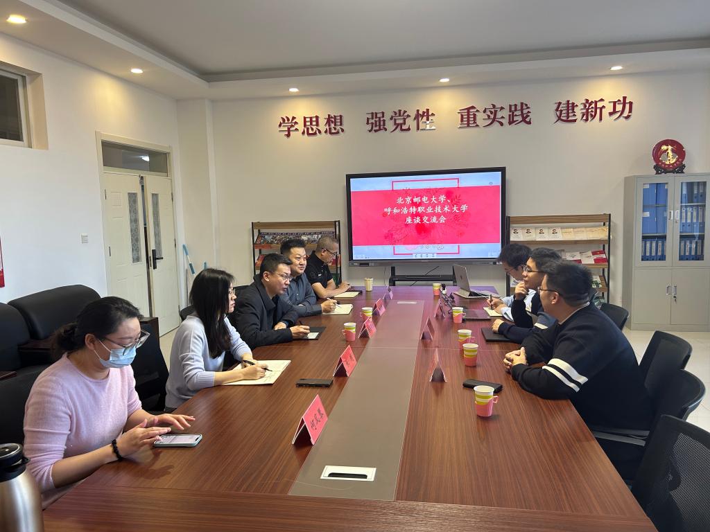 2026年1月28日,北京邮电大学人工智能学院副院长徐士彪、北京邮电大学内蒙古研究院筹备组负责人葛仲、中国科学院自动化所张超峰等一行4人莅临呼和浩特职业技术大学,就京蒙高校联合科研、人工智能赋能职业教育、产教融合及课程共建等进行座谈。呼和浩特职业技术大学党委副书记、校长杨乌日吐,国际教育学院院长杨丛林、副院长张越、综合教研室主任何风琴、美术系德力格尔老师等出席座谈。