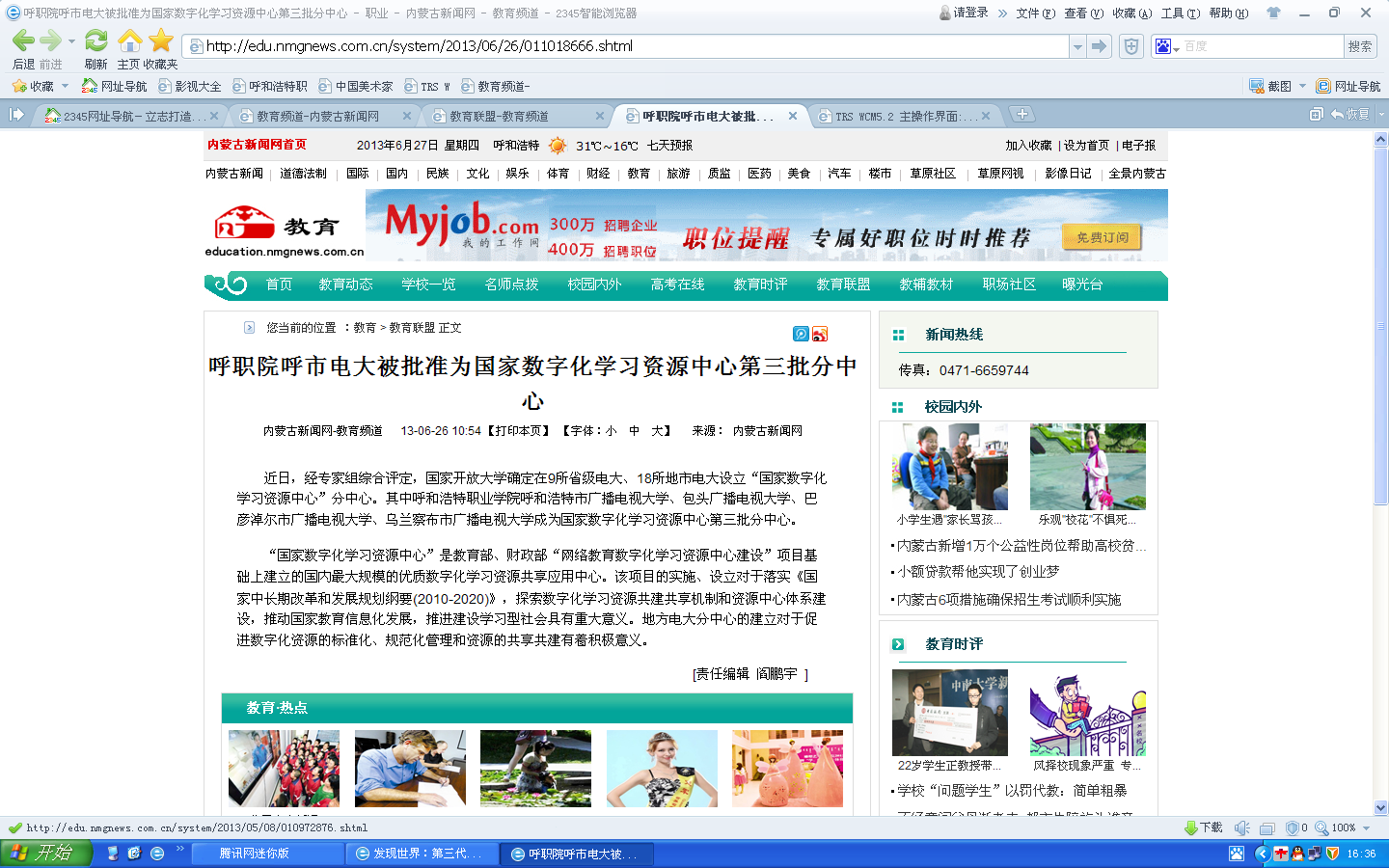 呼职院呼市电大被批准为国家数字化学习资源中心第三批分中心