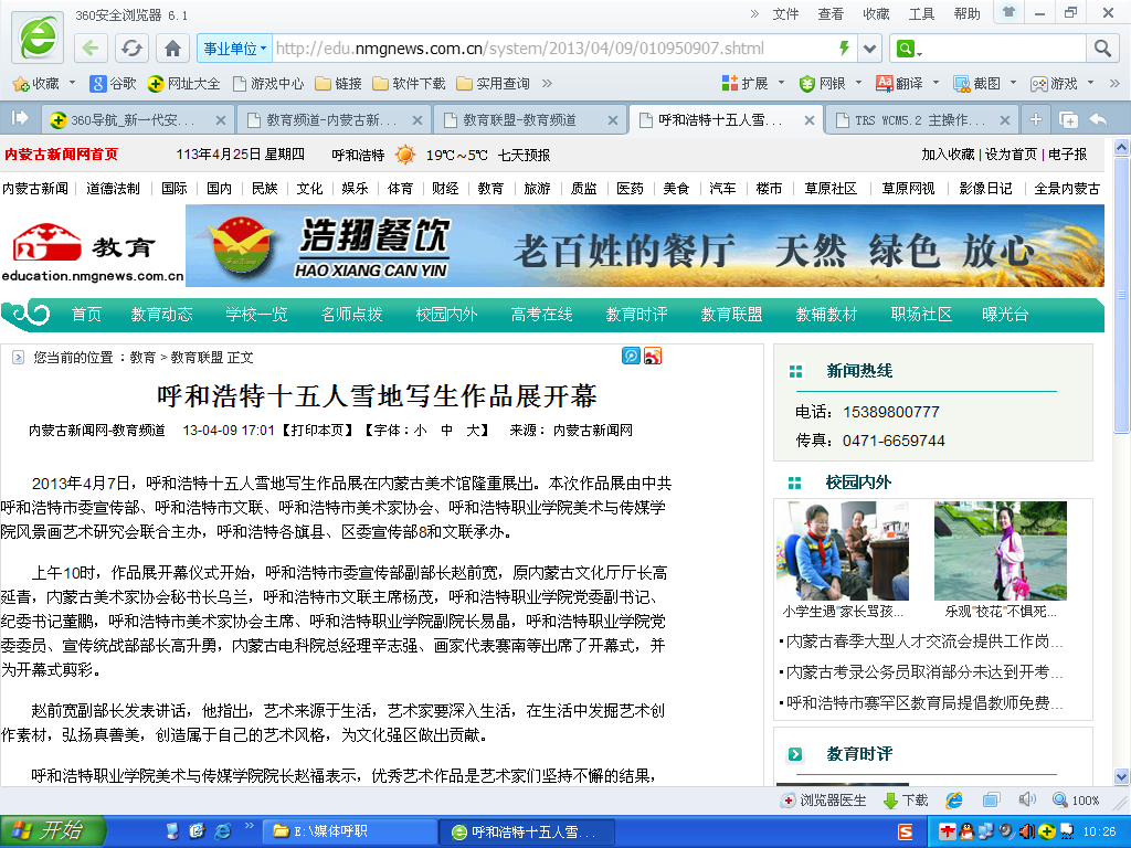内蒙古新闻网:呼和浩特十五人雪地写生作品展开幕