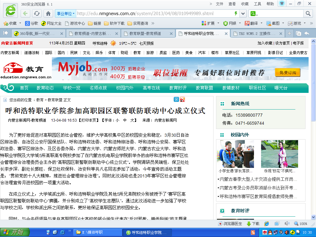 呼和浩特职业学院参加高职园区联警联防联动中心成立仪式