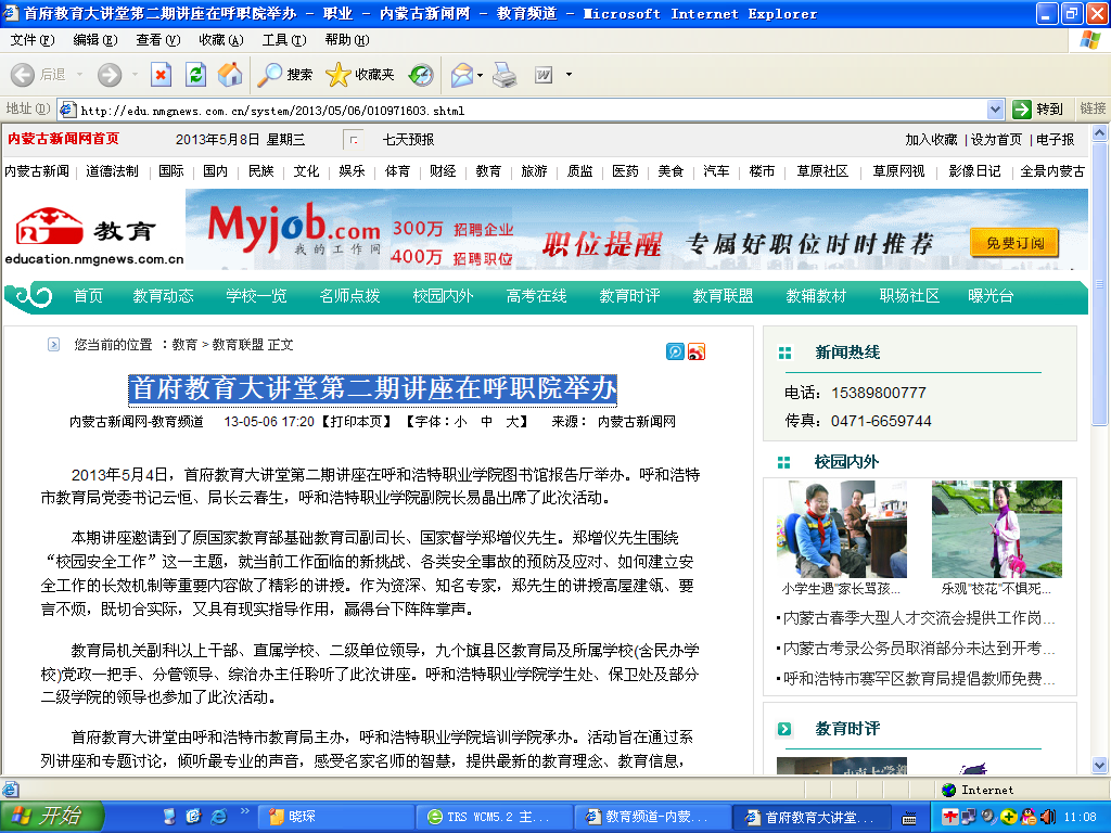 呼职院开展“2013•社会热点面对面”实践教学活动