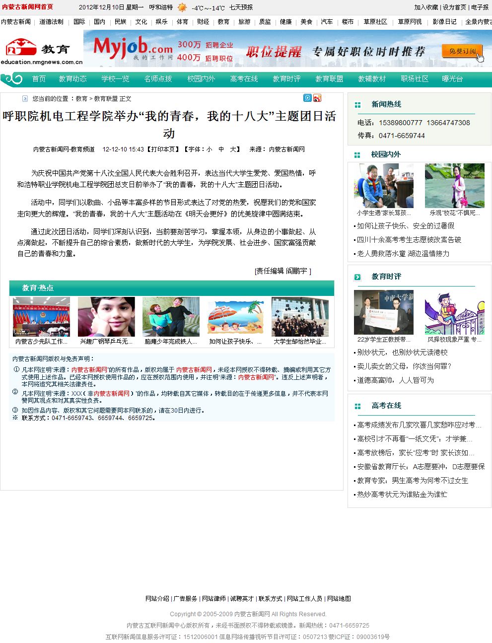呼职院机电工程学院举办“我的青春,我的十八大”主题团日活动