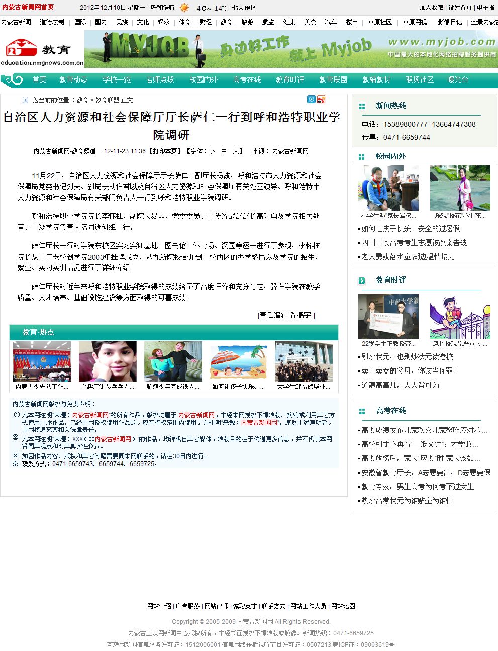 自治区人力资源和社会保障厅厅长萨仁一行到呼和浩特职业学院调研