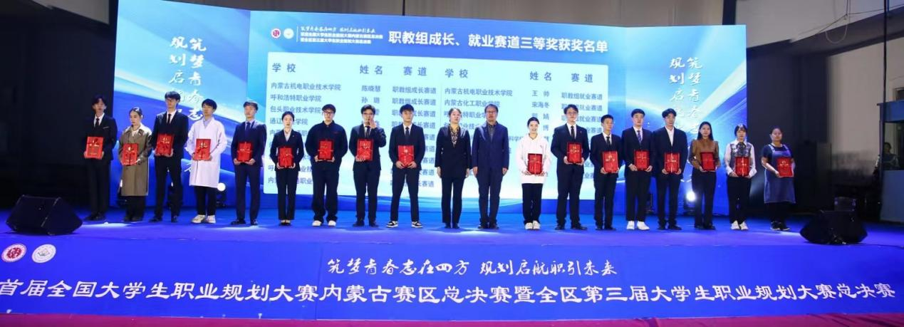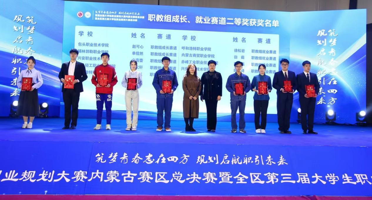 筑梦青春志在四方·规划启航职引未来。12月10日,由内蒙古自治区教育厅主办的首届全国大学生职业规划大赛内蒙古赛区总决赛暨全区第三届大学生职业规划大赛总决赛在内蒙古农业大学举行。我院参赛选手徐松岩同学(机械与电力工程系2021级供用电技术专业)荣获职教组就业赛道二等奖(成绩排名第三)、张正同学(机械与电力工程系2022级供用电技术专业)荣获职教组成长赛道二等奖(成绩排名第七),郭婧同学(美术系2021级美术教育专业)荣获职教组就业赛道三等奖(成绩排名第八),孙露同学(师范部2022级学前教育专业)荣获职教组成长赛道三等奖(成绩排名第九),学院获得优秀组织奖。