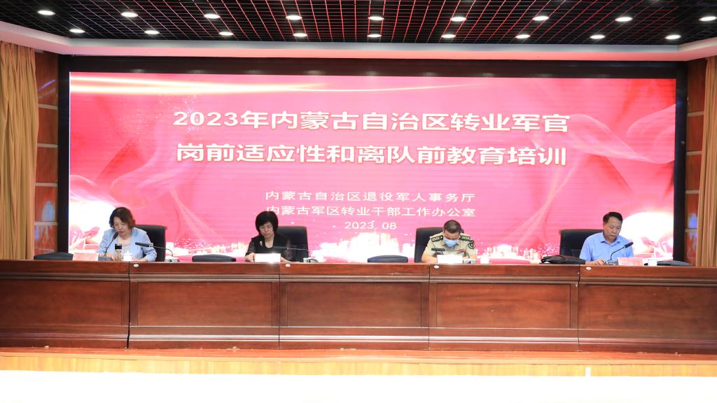 8月4日上午2023年度内蒙古自治区转业军官岗前适应性培训和离队前教育培训在学院明德楼一号会议室举行开班仪式,内蒙古自治区退役军人事务厅党组成员、副厅长邓伟,内蒙古军区转业办大校主任王建国,学院党委书记曹红出席开班仪式。自治区退役军人事务厅移交安置和军休服务管理处处长员培斌主持开班仪式。