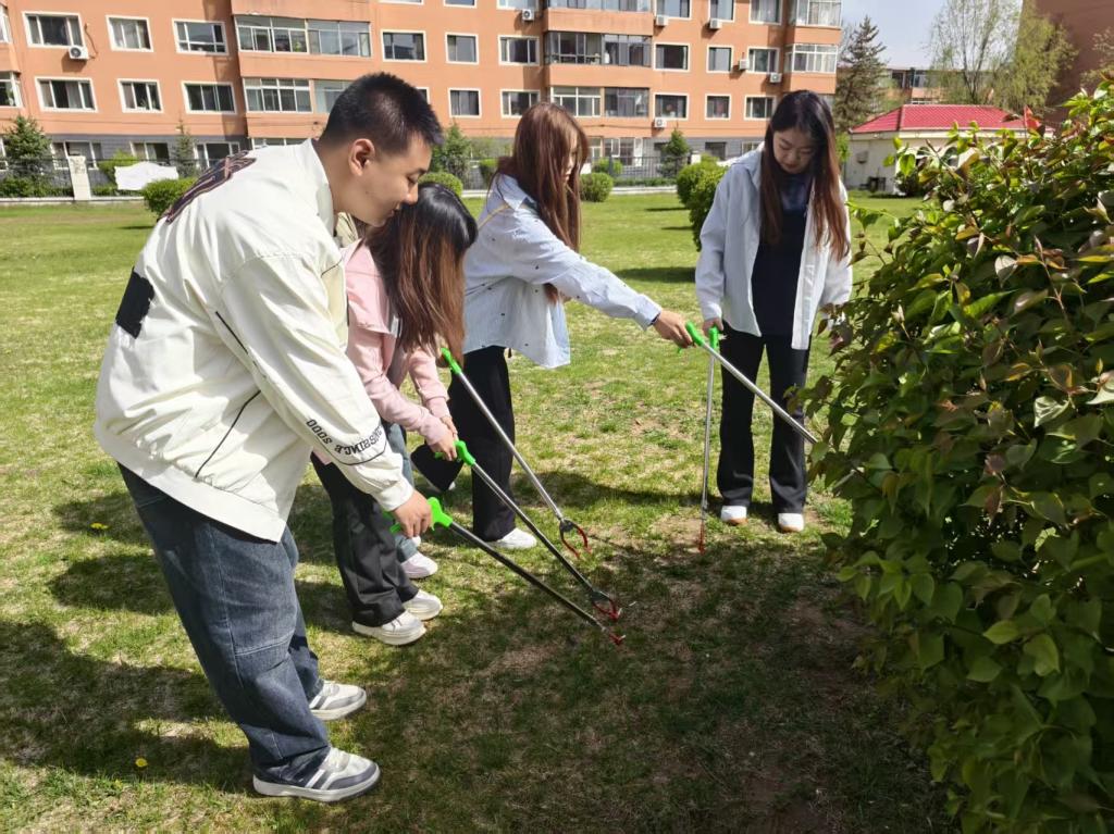 随后,环保实践行动正式拉开帷幕。志愿者们有序领取手套、垃圾夹、垃圾分类袋等工具,迅速投入到垃圾清理工作中。他们分工明确、配合默契,穿梭在绿化带的各个角落,不放过任何一个卫生死角。无论是隐藏在草丛中的烟头,还是散落在路边的塑料瓶,都被一一捡起,分类投放。在大家的共同努力下,党委小广场及周边绿化带的环境焕然一新,变得更加整洁美观。